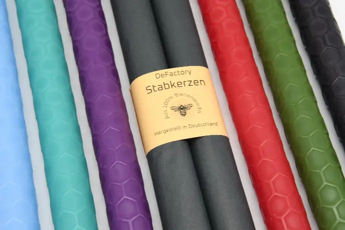 Ja, im Vergleich zu vielen günstigen Kerzen, bei denen nur ein kleiner Anteil der Wachs-Mischung aus Bienenwachs besteht, bestehen alle DeFactory-Kerzen ausschließlich aus 100 % Bienenwachs. Ihre Durchfärbung erhalten die Kerzen durch die Verwendung hochwertiger Pigmentfarben.